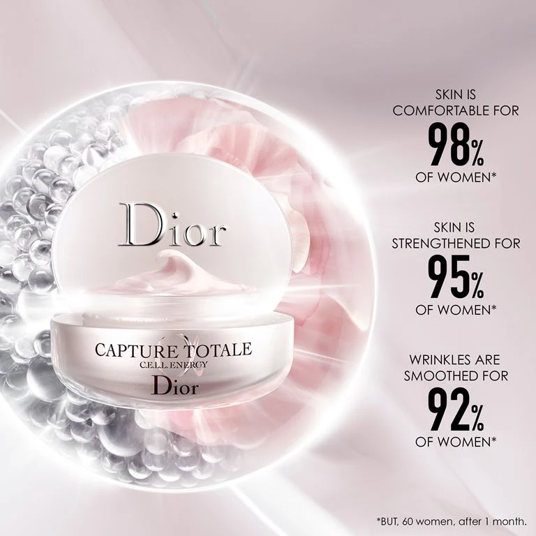 Capture Totale C.E.L.L. ENERGY – Firming & Wrinkle-Correcting Creme fra DIOR. Komplet alderskorrigerende creme, der bygger på Diors stamcelleforskning og blomsterekspertise – giver en sund og strålende hud. Efter 7 dages brug synes rynkerne udfyldt indefra, huden er fastere og har en sund glød. 50 ml.