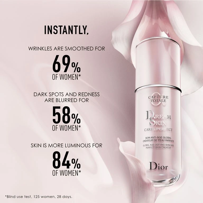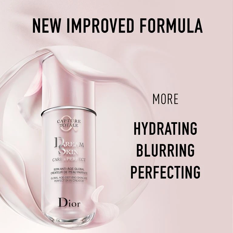Dreamskin Care & Perfect fra DIOR. Dior har genopfundet sin ikoniske Dreamskin-hudpleje, så du kan få hudperfektion, der synes at komme indefra*. Det flydende produkt perfektionerer huden ved at hjælpe med at genskabe en naturlig fin hud og samtidig bekæmpe synlige tegn på aldring. Den bare hud synes mere strålende, som var den udglattet, og er smukkere hver dag. Under foundation er resultaterne forbløffende. Øjeblikkelige, varige resultater (efter 7 og 28 dage), der er synlige for det blotte øje på bar hud. Capture Dreamskin Care & Perfect-hudplejen fås også som refill. *In vitro-test på ingredienser.
