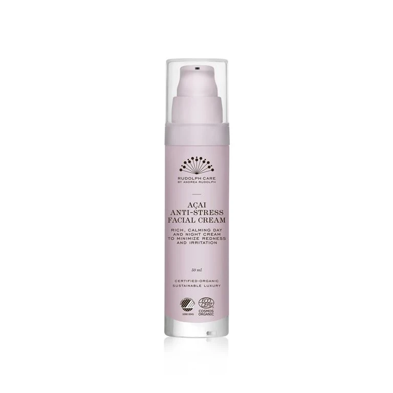 Acai Anti-stress Facial Cream er en rig og beroligende ansigtscreme, som kan bruges som både dag- og natcreme. Det høje indhold af økologiske olier og nærende ingredienser bringer huden i balance og beskytter den mod vind, vejr, forurening, hverdagstravlhed og andre stress-faktorer. Naturlige SOS-hjælpere i form af aloe vera, troldnød og kamille lindrer rødme og irritation, mens økologiske olier og sheasmør plejer huden intensiv, giver ny energi og smuk glød. Det optimale valg, når huden blusser, slår ud, føles tør eller blot har brug for ekstra fugt og pleje.